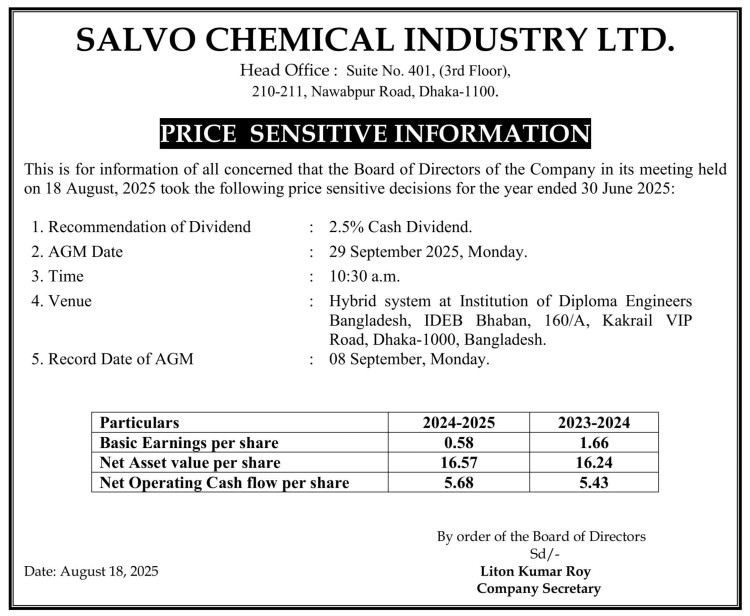 Price Sensitive Information of Salvo Chemical Industry Limited