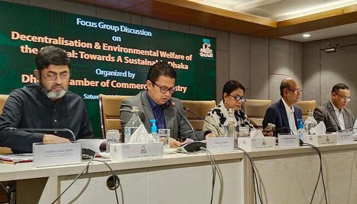 আজ শনিবার (২৩ আগস্ট) ঢাকা চেম্বার আয়োজিত ‘রাজধানী ঢাকার টেকসই উন্নয়নে বিকেন্দ্রীকরণ ও পরিবেশ সুরক্ষা’ শীর্ষক আলোচনা সভায় তিনি এসব কথা বলেন।