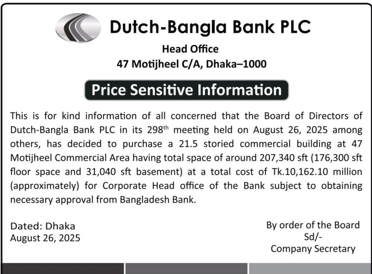 Price Sensitive Information of Dutch-Bangla Bank PLC