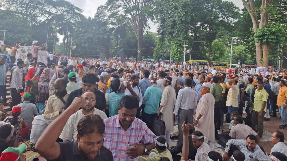 প্রাথমিক শিক্ষকদের মহাসমাবেশ চলছে, কঠোর কর্মসূচির হুঁশিয়ারি