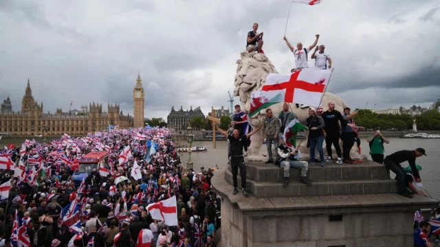 রবিনসন, যার প্রকৃত নাম স্টিফেন ইয়াক্সলে-লেনন, মঞ্চে উঠে ঘোষণা দেন, ‘ব্রিটেন অবশেষে জেগে উঠেছে, এই আন্দোলন কোনোদিন শেষ হবে না।’ তিনি নিজেকে রাষ্ট্রের অনিয়ম উন্মোচনকারী সাংবাদিক হিসেবে দাবি করলেও তার বিরুদ্ধে একাধিক অপরাধের রেকর্ড রয়েছে।
