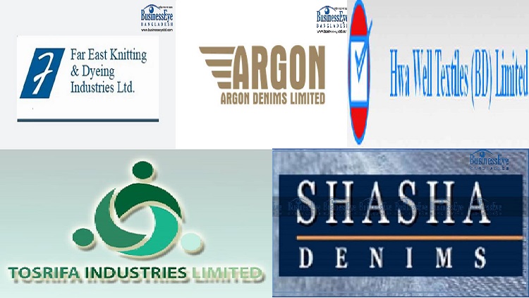 কোম্পানিগুলো হচ্ছে- ফারইস্ট নিটিং অ্যান্ড ডাইং ইন্ডাস্ট্রিজ পিএলসি, আর্গন ডেনিম, হা-ওয়েল টেক্সটাইল বিডি, তসরিফা ইন্ডাস্ট্রিজ ও শাশা ডেনিমস পিএলসি।