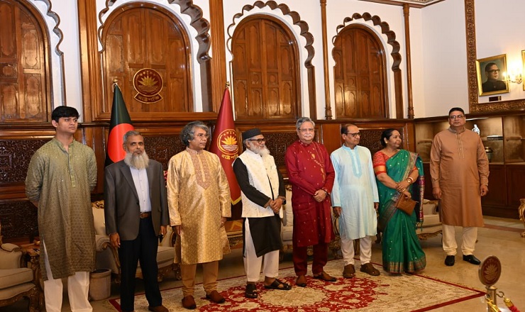 শারদীয় দুর্গোৎসব ও বিজয়া দশমী উপলক্ষে বঙ্গভবনে সনাতন ধর্মাবলম্বীদের সঙ্গে শুভেচ্ছা বিনিময় করেছেন রাষ্ট্রপতি মো. সাহাবুদ্দিন।