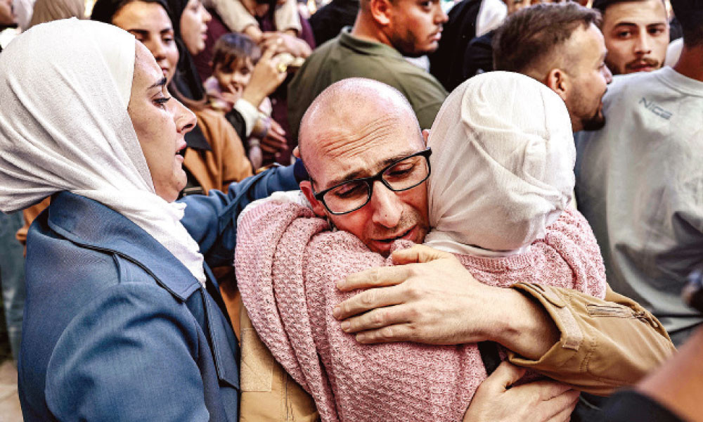 কারাবন্দিদের স্বাগত জানাতে পশ্চিম তীরের বেইতুনিয়া ও গাজার খান ইউনিসে জড়ো হয়েছিলেন শত শত ফিলিস্তিনি।