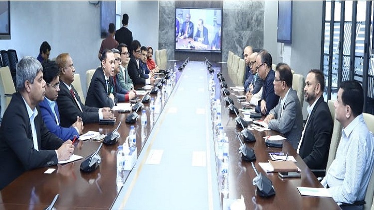 সংবাদ বিজ্ঞপ্তিতে উল্লেখ করা হয়েছে, বৃহস্পতিবার ঢাকা স্টক এক্সচেঞ্জের চেয়ারম্যান মমিনুল ইসলামের নেতৃত্বে ডিএসই পরিচালনা পর্ষদের ৫ সদস্যের প্রতিনিধিদল, বাংলাদেশ পোশাক প্রস্তুতকারক ও রপ্তানিকারক সমিতির (বিজিএমইএ) সভাপতি মাহমুদ হাসান খানের সাথে বৈঠক করেন।