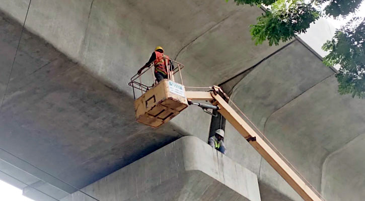 ঢাকার ফার্মগেটে মেট্রোরেল লাইনের যে পিলার থেকে বিয়ারিং প্যাড পড়ে দুর্ঘটনা ঘটেছে, সেটি এখন মেরামতের কাজ করছে ঢাকা ম্যাস ট্রানজিট কোম্পানি লিমিটেডের (ডিএমটিসিএল) কারিগরি টিম।