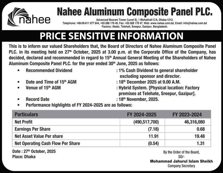Price Sensitive Information of Nahee Aluminum Composite Panel PLC.