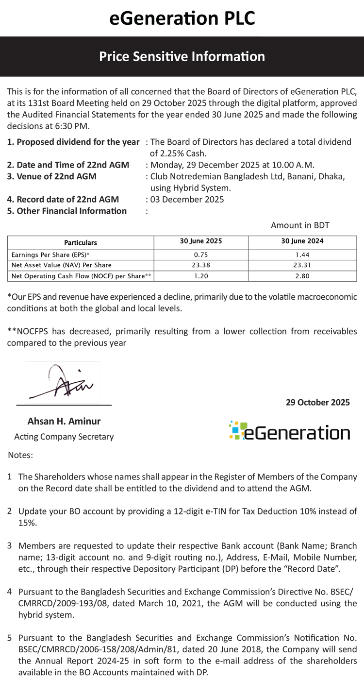 Price Sensitive Information of eGeneration PLC