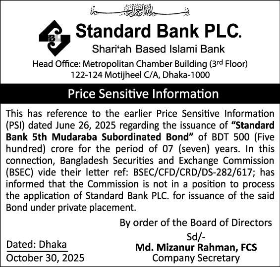 Price Sensitive Information of Standard Bank PLC