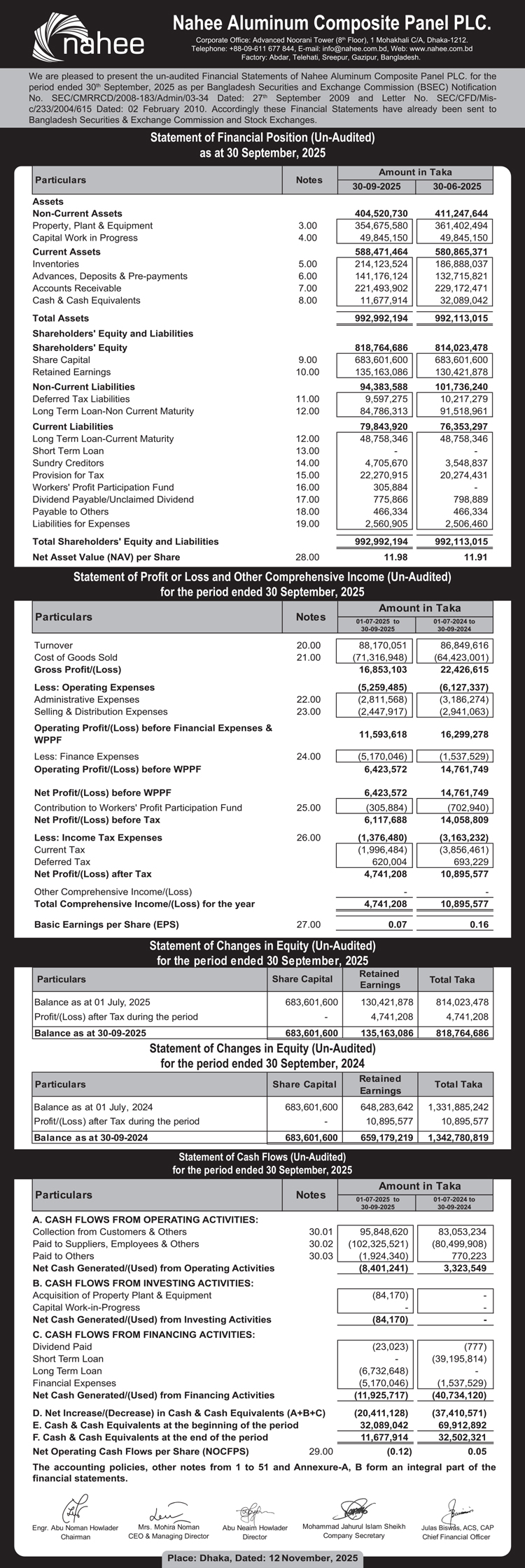 Un-audited Financial Statements of Nahee Aluminum Composite Panel PLC