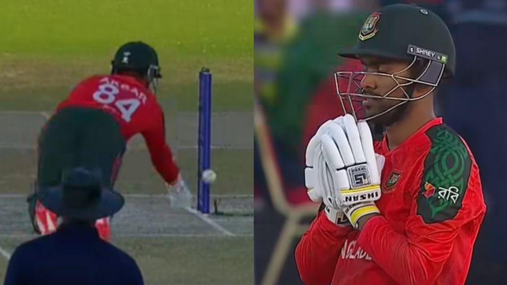 ফিল্ডারের থ্রো সঠিক ছিল না। অনেক দূরে থ্রো করা সে বল আকবরকে অনেক বেরিয়ে এসে নিতে হয়েছিল। তখনই ভারতের দুই ব্যাটার দ্বিতীয় রানের জন্য দৌড়াতে শুরু করেন। নন স্ট্রাইকে থাকা নেহাল ওয়াদেরা তখনো ক্রিজে পা রাখেননি, তাই দেখে আকবর স্টাম্পে বল ছোড়েন, আর সেটা স্টাম্পে না লেগে ওভারথ্রো হয়, সুযোগ নিয়ে ভারত স্কোর সমান করে ফেলে।