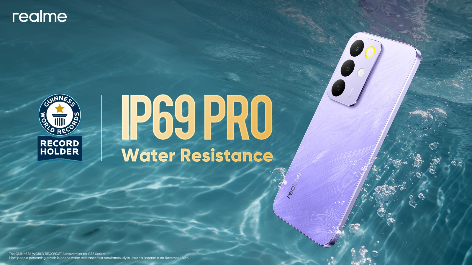 ওয়াটার-রেজিজট্যান্সে গিনেস ওয়ার্ল্ড রেকর্ডস করল রিয়েলমি সি৮৫ সিরিজ