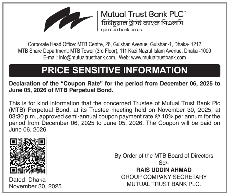 Price Sensitive Information of Mutual Trust Bank PLC.