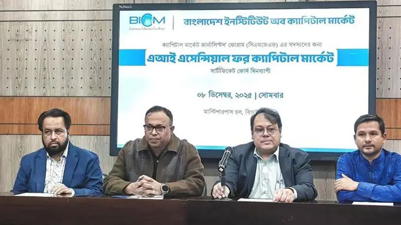 সোমবার (৮ ডিসেম্বর) বিআইসিএমের মাল্টিপারপাস হলে ক্যাপিটাল মার্কেট জার্নালিস্ট ফোরামের (সিএমজেএফ) সদস্যদের জন্য আয়োজিত ‘এআই অ্যাসেন্সিয়াল ফর ক্যাপিটাল মার্কেট’ শীর্ষক দিনব্যাপী প্রশিক্ষণ কর্মশালার উদ্বোধনী অনুষ্ঠানে তিনি এ মন্তব্য করেন। কর্মশালাটি যৌথভাবে আয়োজন করে সিএমজেএফ ও বিআইসিএম।