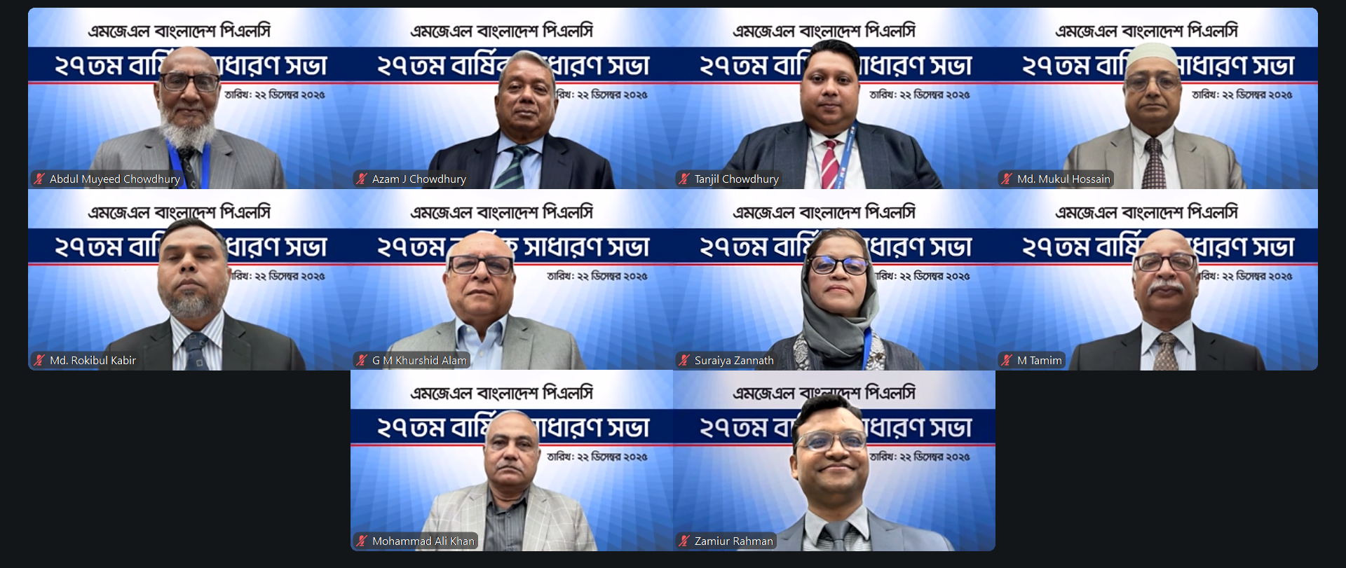 সোমবার সকাল ১১টায় ভার্চুয়াল কনফারেন্সিং-এর মাধ্যমে এমজেএল বাংলাদেশ পিএলসি-এর ২৭তম বার্ষিক সাধারণ সভা (এজিএম) অনুষ্ঠিত হয়েছে।