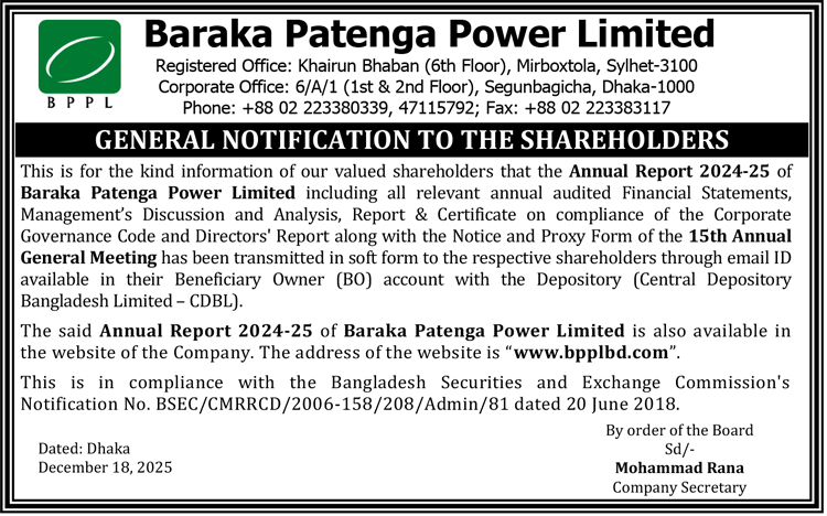 General Notification to the Shareholders of Baraka Patenga Power Limited