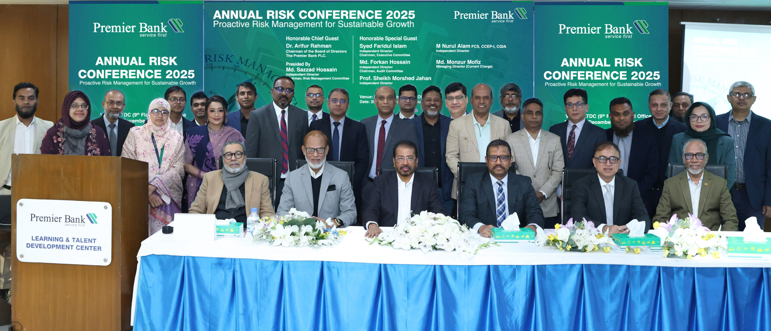 দি প্রিমিয়ার ব্যাংক পিএলসি সম্প্রতি তাদের বার্ষিক ঝুঁকি বিষয়ক সম্মেলন ২০২৫ আয়োজন করেছে। এবারের সম্মেলনের মূল প্রতিপাদ্য ছিল—“টেকসই প্রবৃদ্ধির জন্য প্রোঅ্যাকটিভ রিস্ক ম্যানেজমেন্ট”। ব্যাংকের প্রধান কার্যালয়ে অনুষ্ঠিত এ সম্মেলনে প্রধান অতিথি হিসেবে উপস্থিত ছিলেন পরিচালনা পর্ষদের মাননীয় চেয়ারম্যান ডাঃ আরিফুর রহমান। সভাপতিত্ব করেন রিস্ক ম্যানেজমেন্ট কমিটির চেয়ারম্যান ও স্বতন্ত্র পরিচালক মো. সাজ্জাদ হোসেন। বিশেষ অতিথি হিসেবে উপস্থিত ছিলেন স্বতন্ত্র পরিচালক ও এক্সিকিউটিভ কমিটির চেয়ারম্যান সৈয়দ ফরিদুল ইসলাম এবং স্বতন্ত্র পরিচালক ও প্রিমিয়ার ব্যাংক সিকিউরিটিজ লিমিটেডের চেয়ারম্যান এম. নুরুল আলম, এফসিএস, সিসিইপি-আই, সিজিআইএ।