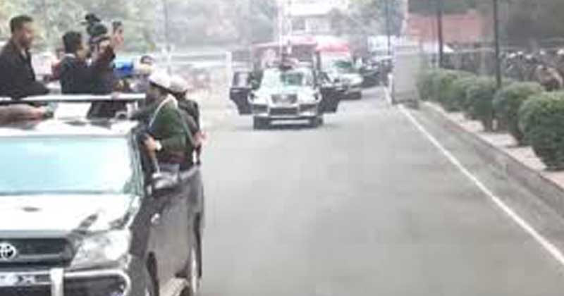 সাবেক প্রধানমন্ত্রী ও বিএনপি চেয়ারপারসন বেগম খালেদা জিয়ার মরদেহ কঠোর নিরাপত্তার মধ্য দিয়ে জাতীয় সংসদ ভবনের দক্ষিণ প্লাজায় পৌঁছেছে। তাকে বহন করা হয়েছে লাল-সবুজ রঙের জাতীয় পতাকায় মোড়ানো একটি ফ্রিজার ভ্যানে। সেনাবাহিনী হিউম্যান চেইন তৈরি করে রাষ্ট্রীয় প্রোটকলে তার মরদেহ আনা হয়।