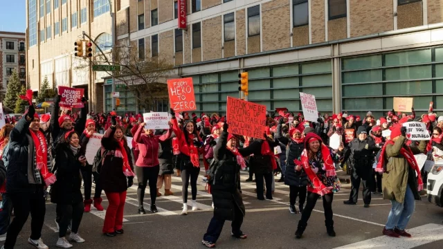 যুক্তরাষ্ট্রের নিউ ইয়র্ক সিটির ইতিহাসে বৃহত্তম নার্স বিক্ষোভ-ধর্মঘটে শামিল হয়েছেন প্রায় ১৫ হাজার স্বাস্থ্যকর্মী। বেতন-ভাতা বৃদ্ধি, নিরাপদ কর্মপরিবেশ এবং পর্যাপ্ত জনবল নিয়োগের দাবিতে সোমবার (১২ জানুয়ারি) ভোর থেকে মাউন্ট সিনাই, মন্টিফিওর এবং নিউ ইয়র্ক-প্রেসবিটেরিয়ান—এই তিনটি প্রধান বেসরকারি হাসপাতালের নার্সরা কর্মবিরতি শুরু করেন।