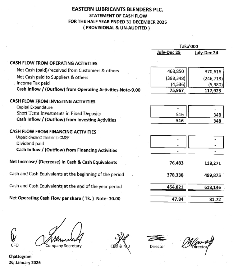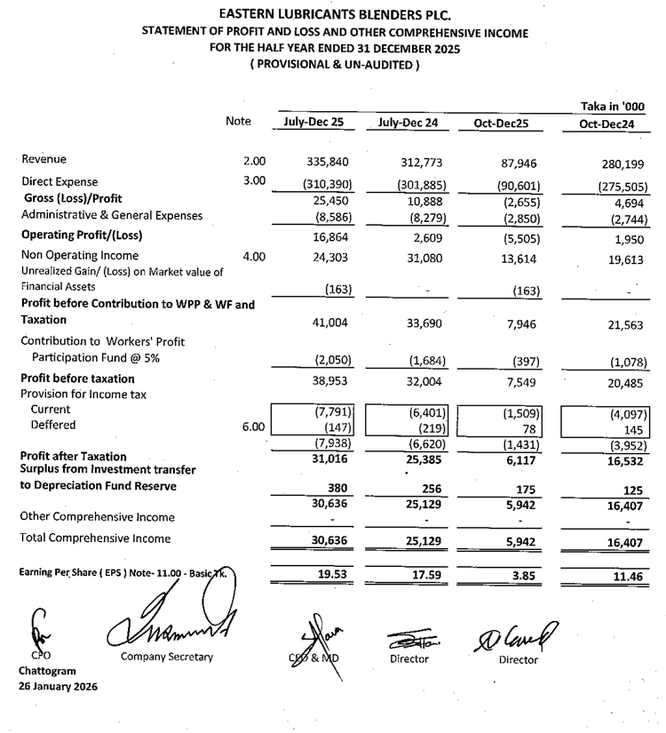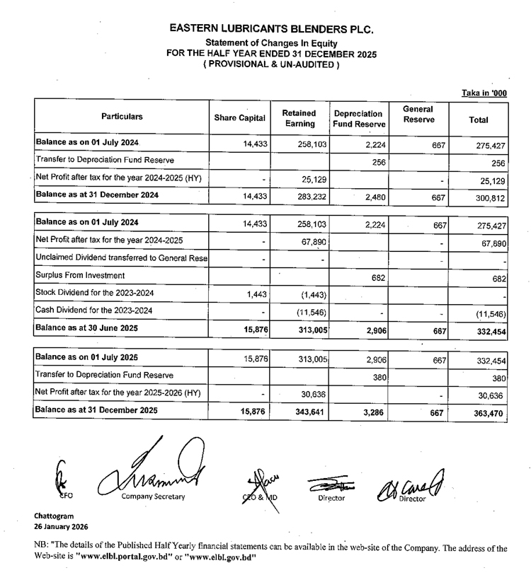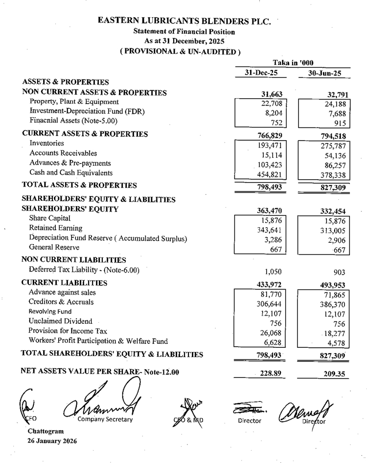 2nd Quarter Financial Statements of Eastern Lubricants Blenders PLC.