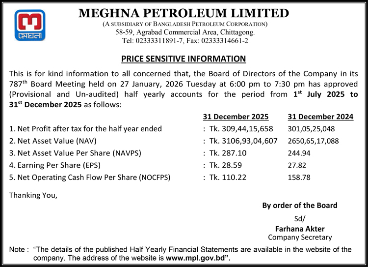 Price Sensitive Information of Meghna Petroleum Limited