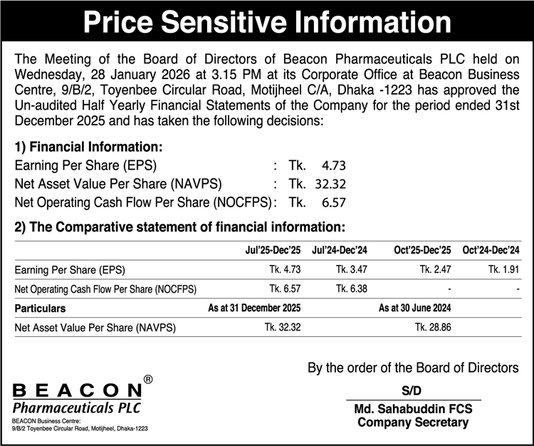 Price Sensitive Information of Beacon Pharmaceuticals PLC.