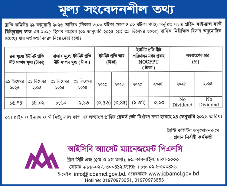 Price Sensitive Information of Prime Finance First Mutual Fund