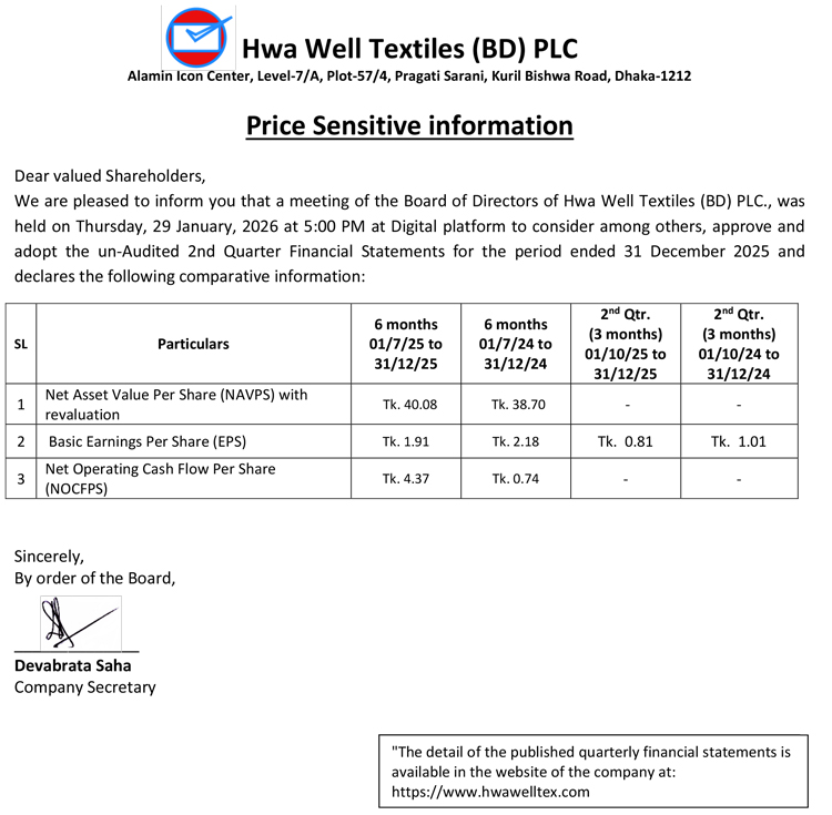 Price Sensitive Information of Hwa Well Textiles (BD) PLC.