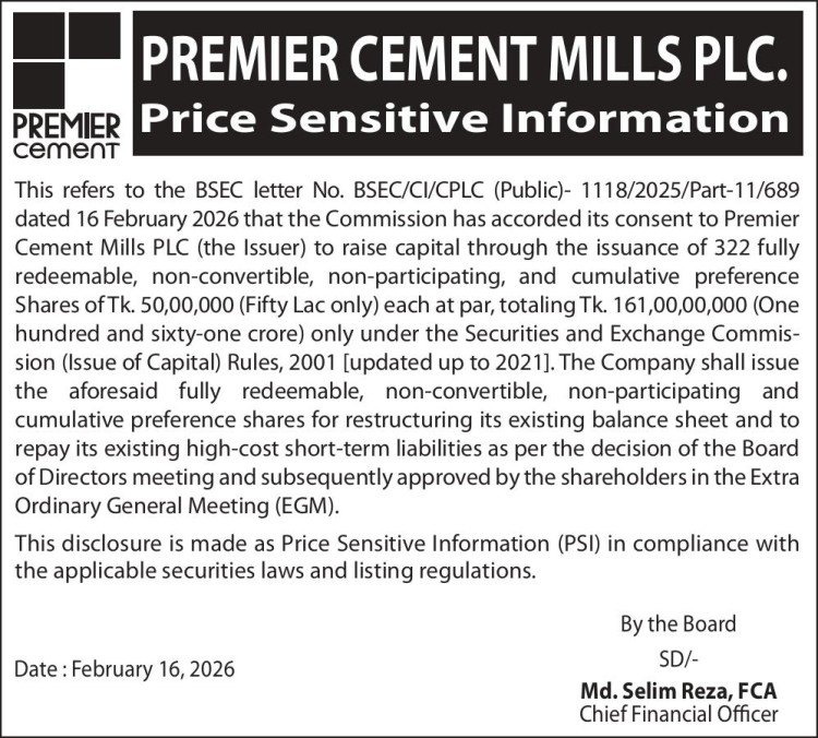 Price Sensitive Information of Premier Cement Mills PLC.