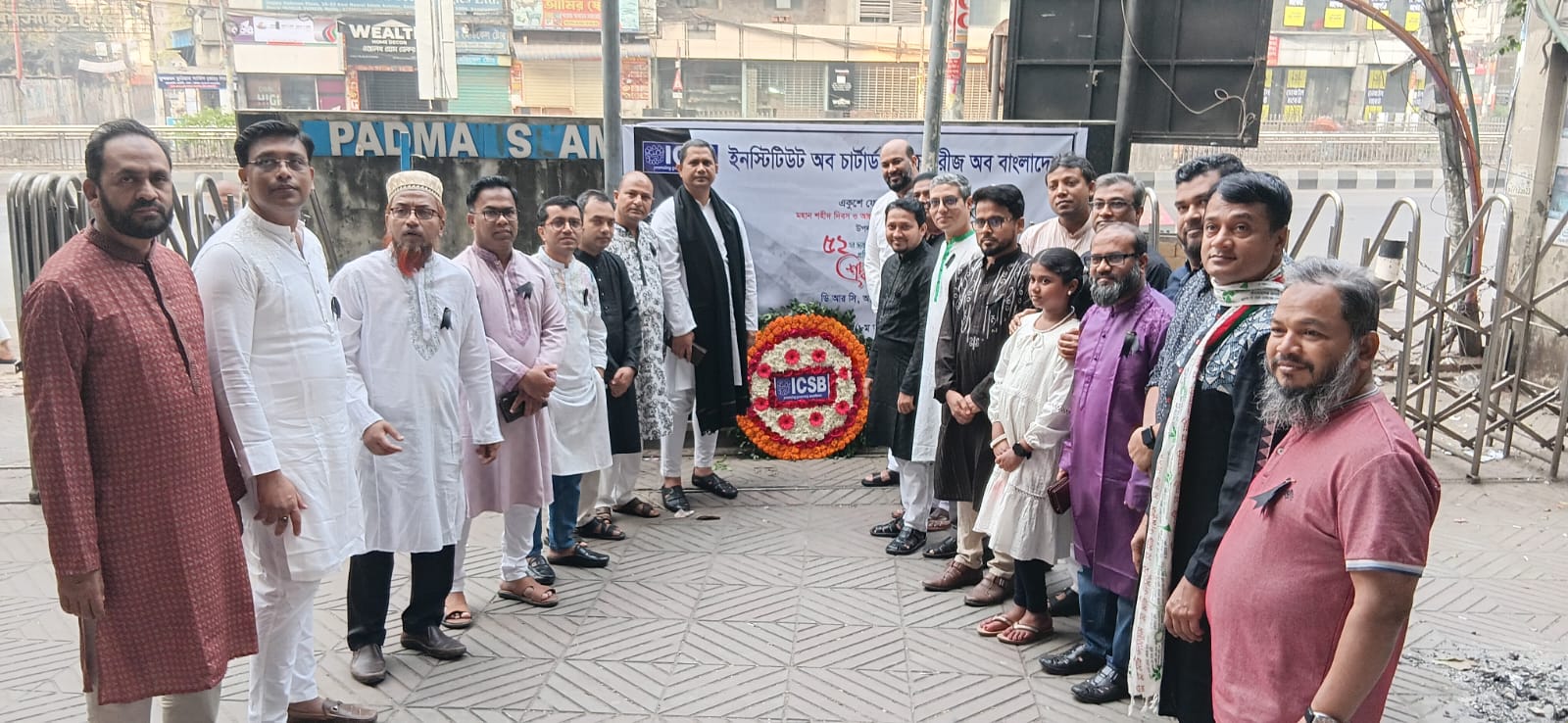 ইনস্টিটিউট অব চার্টার্ড সেক্রেটারীজ অব বাংলাদেশ (আইসিএসবি) যথাযোগ্য মর্যাদা ও শ্রদ্ধার সঙ্গে ২১ ফেব্রুয়ারি ২০২৬ তারিখে মহান শহীদ দিবস ও আন্তর্জাতিক মাতৃভাষা দিবস পালন করে। ঢাকা রিজিওনাল চ্যাপ্টার (ডিআরসি) সাব কমিটি, আইসিএসবি উক্ত অনুষ্ঠানের আয়োজন করে। দিবসটি শুরু হয় ভোরে সূর্য উদয়ের পর জাতীয় পতাকা উত্তোলন (অর্ধনমিত) এর মাধ্যমে। আইসিএসবির কাউন্সিল সদস্য, সদস্য এবং কর্মকর্তাদের অংশগ্রহনে একটি র‍্যালী আইসিএসবির ক্যাম্পাস থেকে ব্যানার ও পুষ্পস্তবক সহ প্রভাত ফেরী করে কেন্দ্রীয় শহীদ মিনার প্রাঙ্গনে শহীদদের প্রতি শ্রদ্ধা নিবেদন করেন।