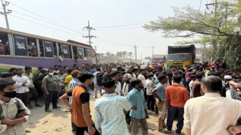 বকেয়া বেতনের দাবিতে শ্রমিক বিক্ষোভ