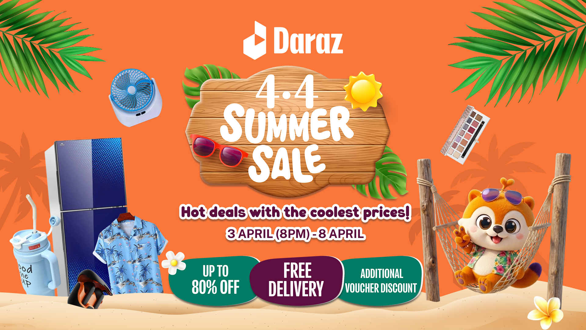 দেশের বৃহত্তম অনলাইন মার্কেটপ্লেস দারাজ বাংলাদেশ নিয়ে এসেছে বহুল প্রতীক্ষিত ‘৪.৪ সামার সেল’। গ্রীষ্মের এই মৌসুমে গ্রাহকদের জন্য সেরা ডিল এবং সাশ্রয়ী কেনাকাটার অভিজ্ঞতা দিতেই এই বিশেষ ক্যাম্পেইন। আগামী ৩ এপ্রিল রাত ৮টা থেকে শুরু হয়ে এই সেল চলবে ৮ এপ্রিল ২০২৬ পর্যন্ত। সীমিত সময়ের এই ক্যাম্পেইনে থাকছে আকর্ষণীয় ডিসকাউন্ট, নামী ব্র্যান্ডের সাথে কোলাবরেশন এবং দেশজুড়ে নিরবচ্ছিন্ন অনলাইন শপিংয়ের সুযোগ।