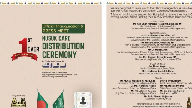 এই উদ্যোগের মাধ্যমে বাংলাদেশি হজযাত্রীরা নুসুক কার্ড গ্রহণ করবেন, যা তাদের হজযাত্রাকে আরও সহজ, নিরাপদ ও সুশৃঙ্খল এবং নির্বিঘ্ন করতে সহায়ক হবে বলে আয়োজকরা জানিয়েছেন।