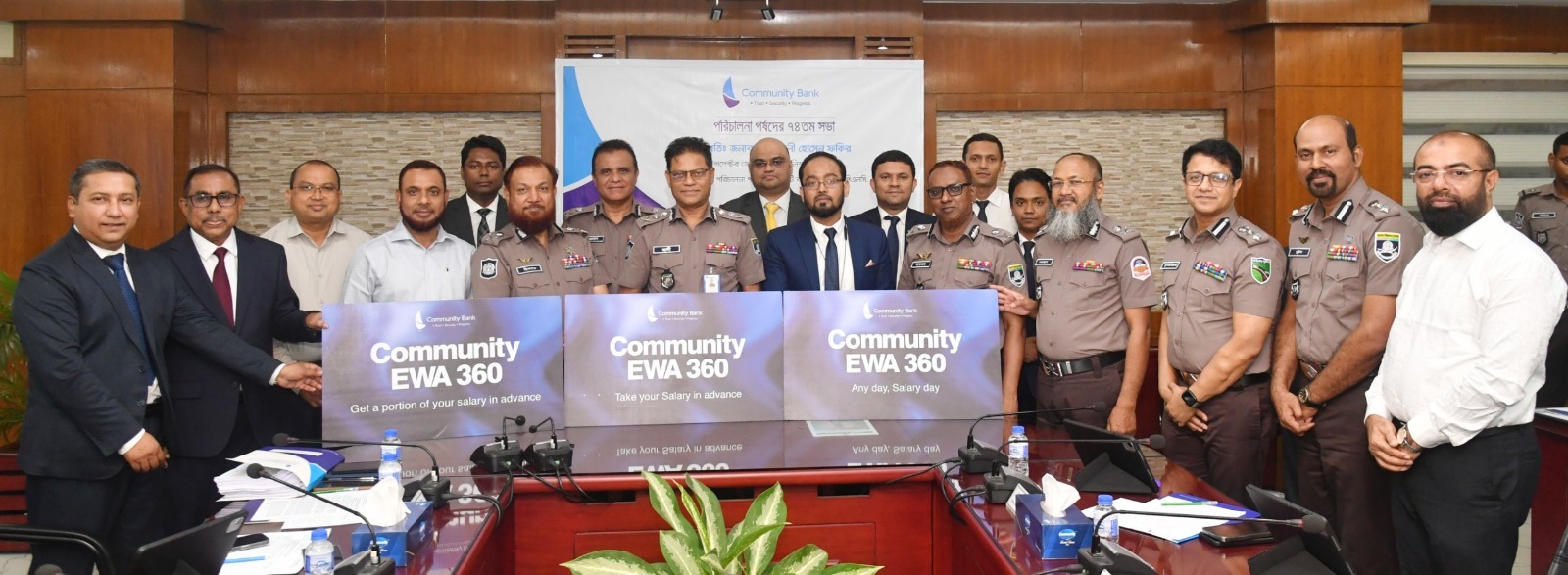 কমিউনিটি ব্যাংক বাংলাদেশ পিএলসি. সর্বাধুনিক ডিজিটাল আর্থিক সমাধান ‘কমিউনিটি EWA 360’ আনুষ্ঠানিকভাবে উদ্বোধন করেছে। বাংলাদেশ পুলিশের সদর দপ্তরে অনুষ্ঠিত ব্যাংকের পরিচালনা পর্ষদের ৭৪তম সভা শেষে এ সেবার উদ্বোধন করা হয়।