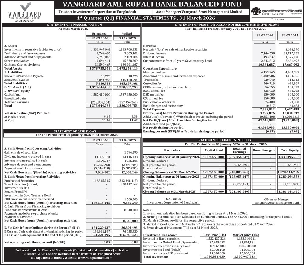Q1 Financial Statements of Vanguard AML Rupali Bank Balanced Fund