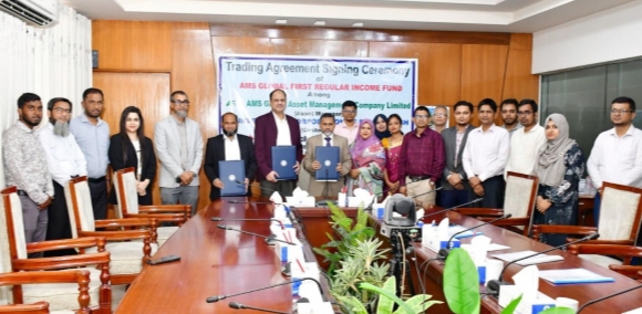 বাংলাদেশ সিকিউরিটিজ অ্যান্ড এক্সচেঞ্জ কমিশন (মিউচ্যুয়াল ফান্ড) বিধিমালা-২০২৫ অনুযায়ী “এএমএস গ্লোবাল ফার্স্ট রেগুলার ইনকাম ফান্ড”এর সিকিউরিটিজ লেনদেন পরিচালনার জন্য ২১ এপ্রিল ২০২৬ তারিখে আইসিবি’র প্রধান কার্যালয়ের বোর্ড রুমে ইনভেস্টমেন্ট কর্পোরেশন অব বাংলাদেশ (কাস্টডিয়ান), এএমএস গ্লোবাল অ্যাসেট ম্যানেজমেন্ট কোম্পানি লিমিটেড (সম্পদ ব্যবস্থাপক) এবং ইউসিবি স্টক ব্রোকারেজ লিমিটেড (ব্রোকারেজ হাউস) এর মধ্যে একটি ত্রি-পক্ষীয় ট্রেডিং চুক্তি স্বাক্ষরিত হয়।