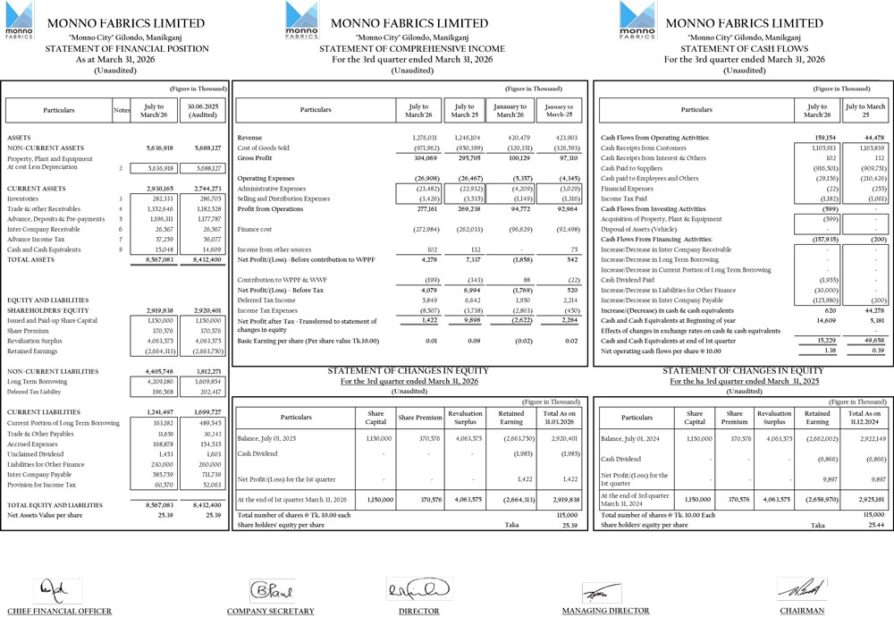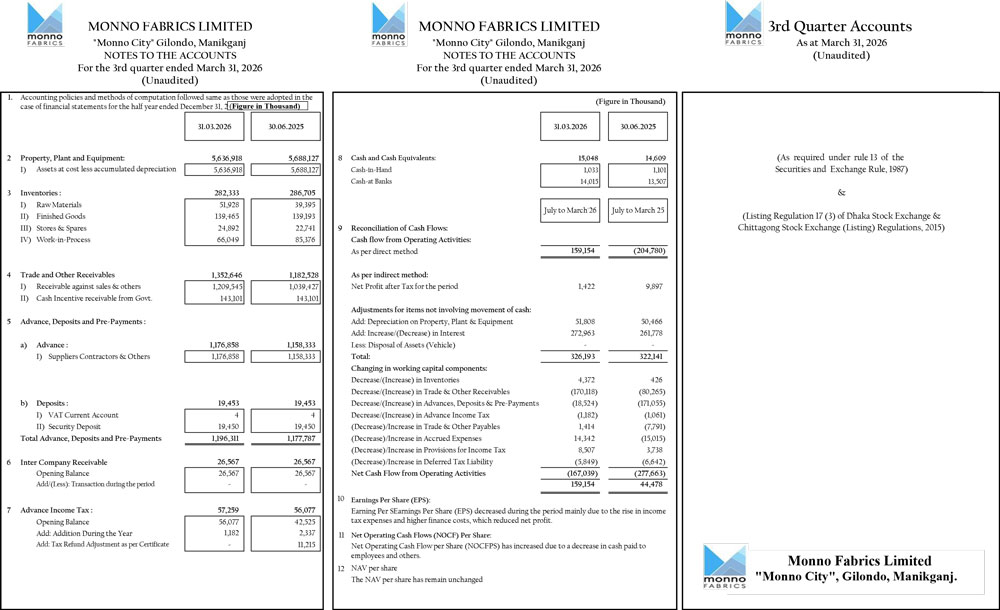 Q3 Un-audited Financial Statements of Monno Fabrics Limited