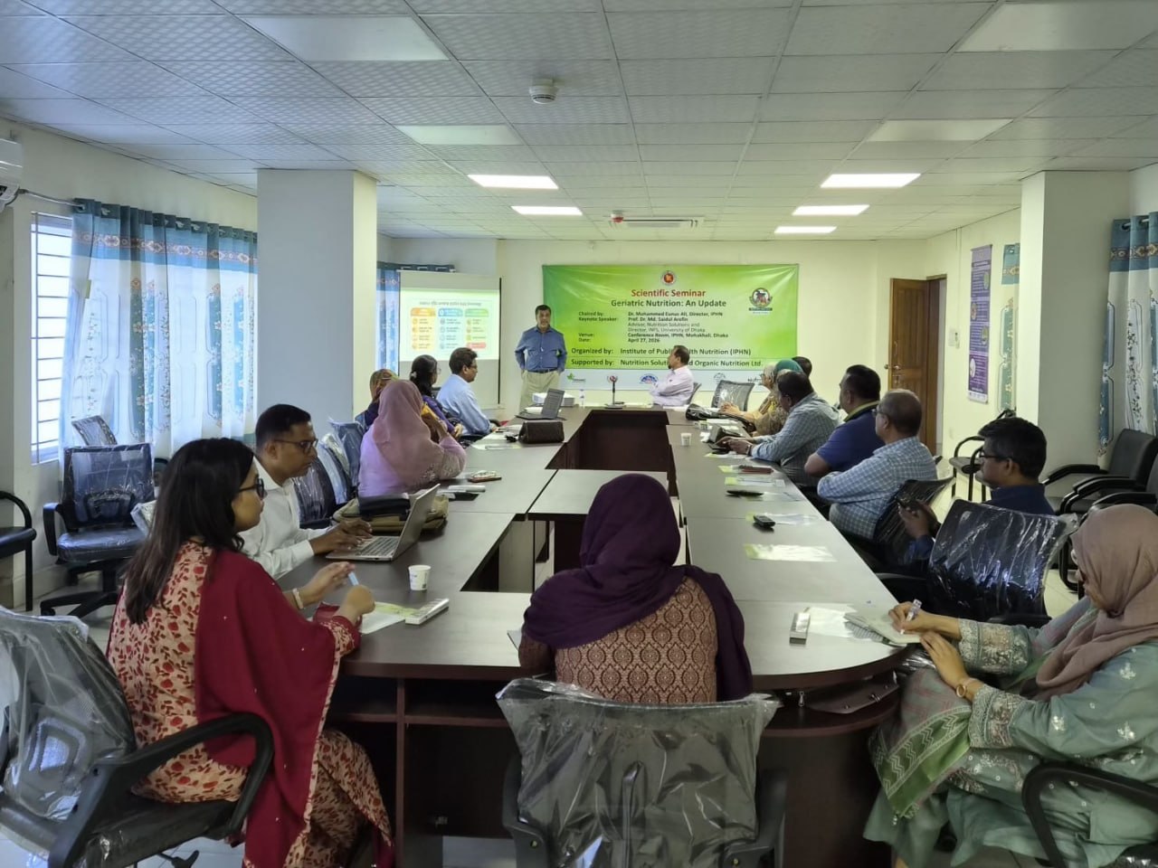 “জাতীয় পুষ্টি সপ্তাহ ২০২৬” উপলক্ষ্যে জনস্বাস্থ্য পুষ্টি প্রতিষ্ঠান, নিউট্রিশন সলিউশনস ও অর্গানিক নিউট্রিশন লিমিটেড এর যৌথ উদ্যোগে জনস্বাস্থ্য পুষ্টি প্রতিষ্ঠান, মহাখালীতে ২৭ এপ্রিল, ২০২৬ তারিখ একটি সায়েন্টিফিক সেমিনার অনুষ্ঠিত হয়। উক্ত সেমিনারের শিরোনাম ছিল “Geriatric Nutrition: An Update” এবং কিনোট স্পীকার ছিলেন ঢাকা বিশ্ববিদ্যালয়ের পুষ্টি ও খাদ্য বিজ্ঞান ইনিস্টিটিউট এর পরিচালক এবং নিউট্রিশন সলিউশনসের উপদেষ্টা অধ্যাপক ডা. মোঃ সায়েদুল আরেফিন।