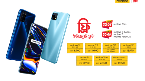নতুন রিয়েলমি স্মার্টফোন কিনলেই ফ্রি ইন্টারনেট