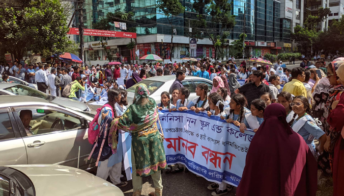 স্থায়ী ক্যাম্পাসের দাবিতে ভিকারুননিসার শিক্ষার্থীদের বিক্ষোভ