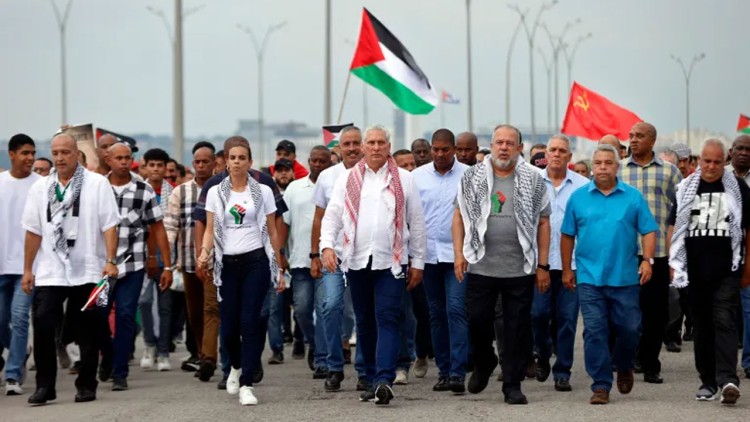 রাজপথে ফিলিস্তিনপন্থি মিছিলের নেতৃত্ব দিলেন কিউবার প্রেসিডেন্ট