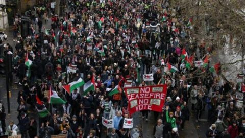 গাজায় যুদ্ধবিরতির দাবিতে লন্ডনে মিছিল