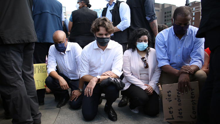 হাঁটু গেড়ে বসে বিক্ষোভে সংহতি ট্রুডোর