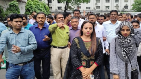 প্রেসক্লাবের সামনে আন্দোলনকারীদের জলকামান- সাউন্ড গ্রেনেড দিয়ে ছত্রভঙ্গ করলো পুলিশ