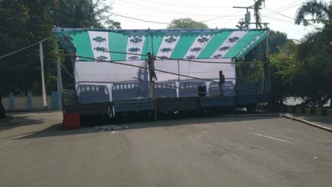 আওয়ামী লীগ নিষিদ্ধের দাবিতে সমাবেশ: চলছে মঞ্চ তৈরির কাজ