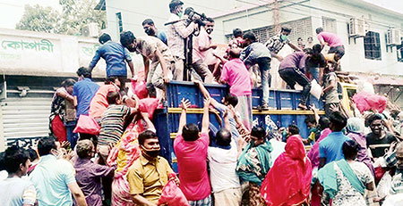 ট্রাক আটকে সরকারি ত্রাণ নিয়ে গেল হতদরিদ্ররা