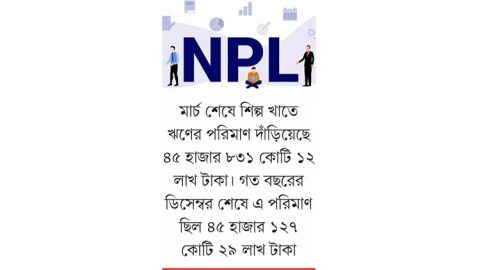 শিল্পে খেলাপি ঋণ বেড়ে ৪৫,৮৩১ কোটি টাকা