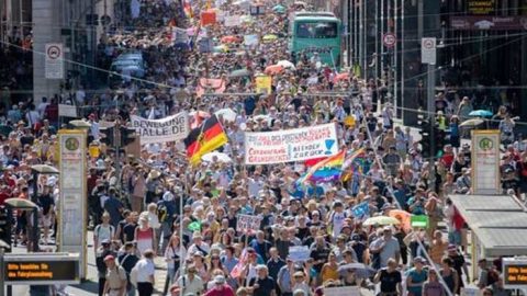 জার্মানিতে করোনা বিরোধী মিছিল, আটক ১৩০